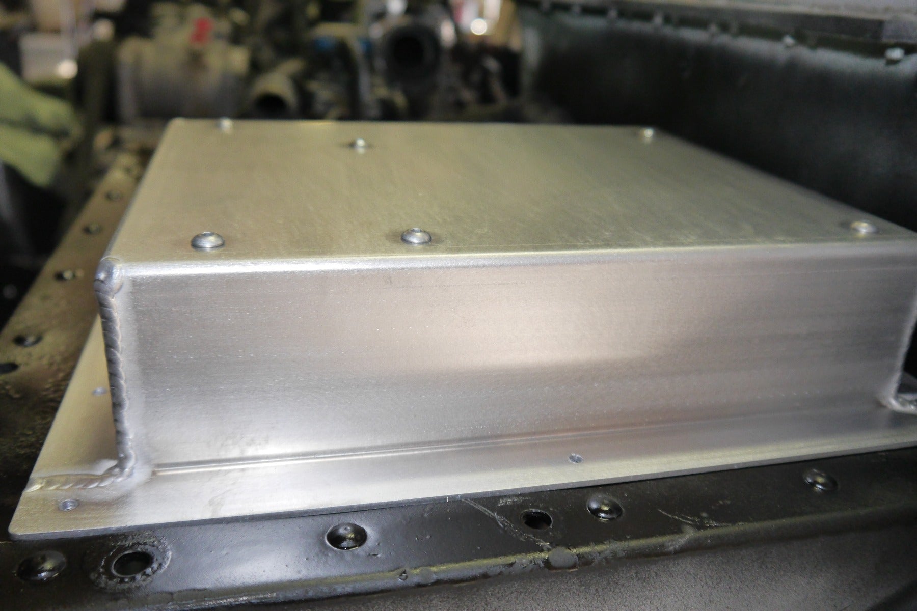 Computer enclosure to house and protect the electronics of the Duramax engine and transmission controls and fuse panel. Fits above the footwell of the driver where the washer bottle typically resides. Installation requires a cut out of the area around the box. Seals and protects from contamination. A must for Duramax conversions. Includes all sheetmetal and hardware. No finish. No electronics included.